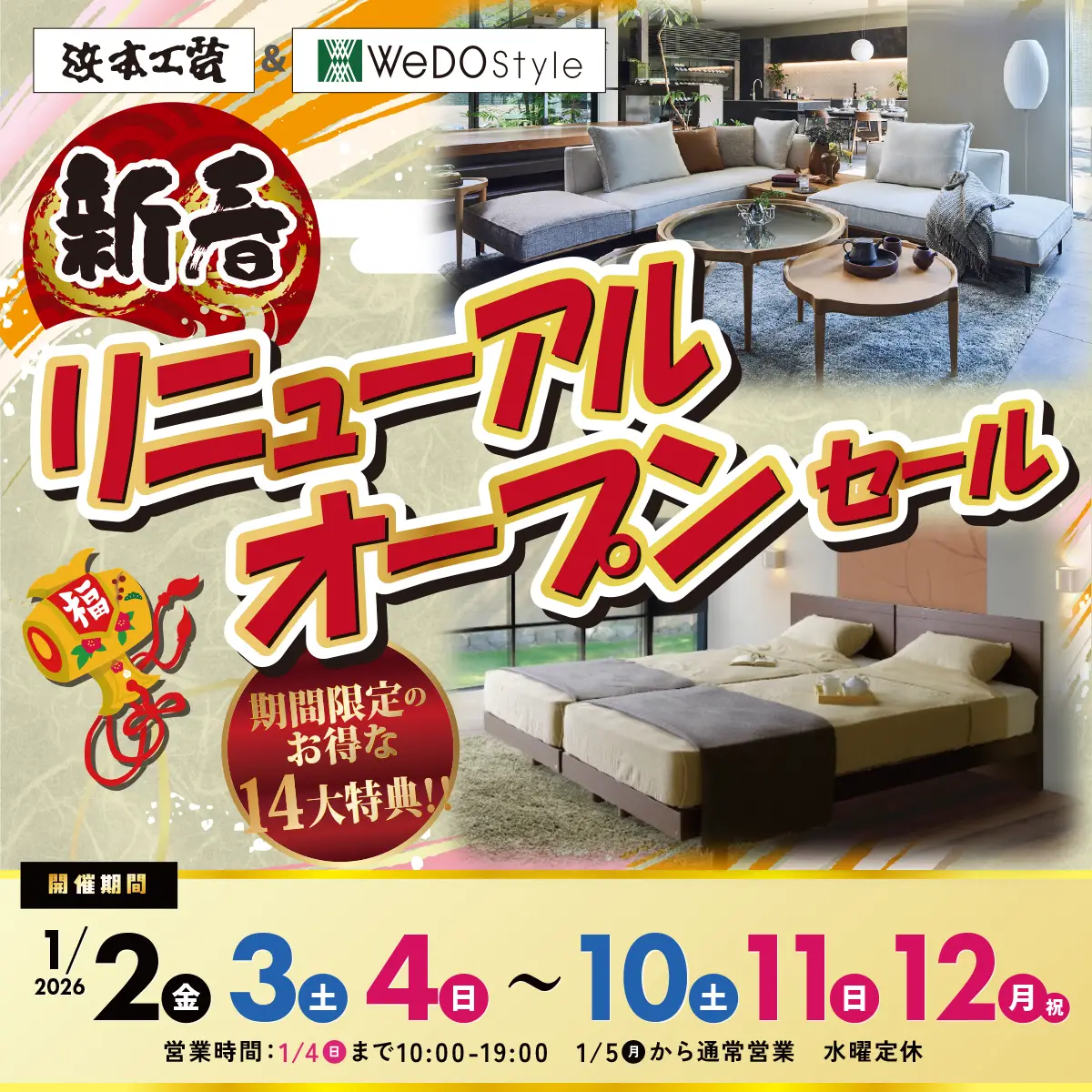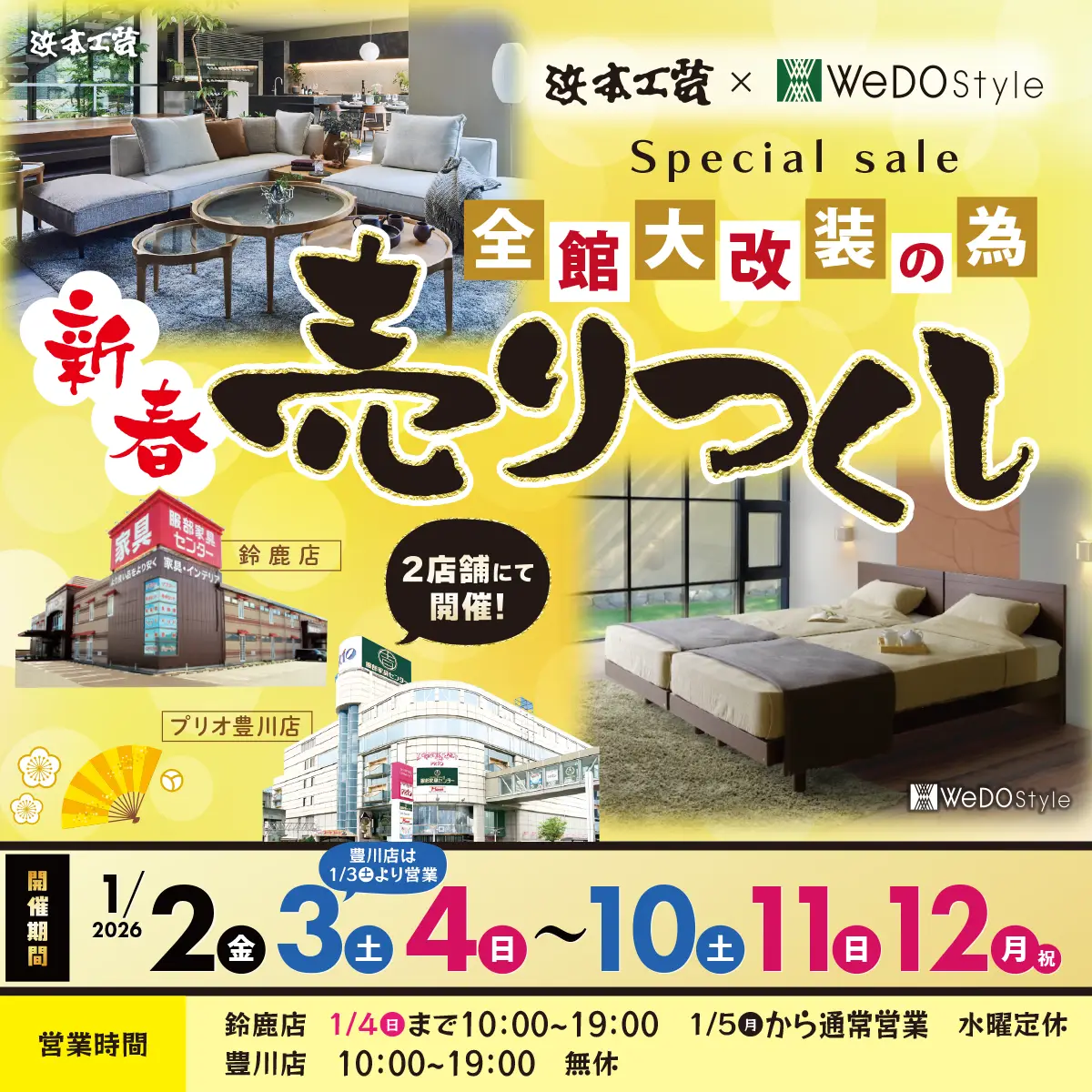 《浜本工芸 × ウィドゥ・スタイル》新春・超特価市 in 名古屋本店・日進店・江南店・知立店・岐阜柳津店・四日市本店