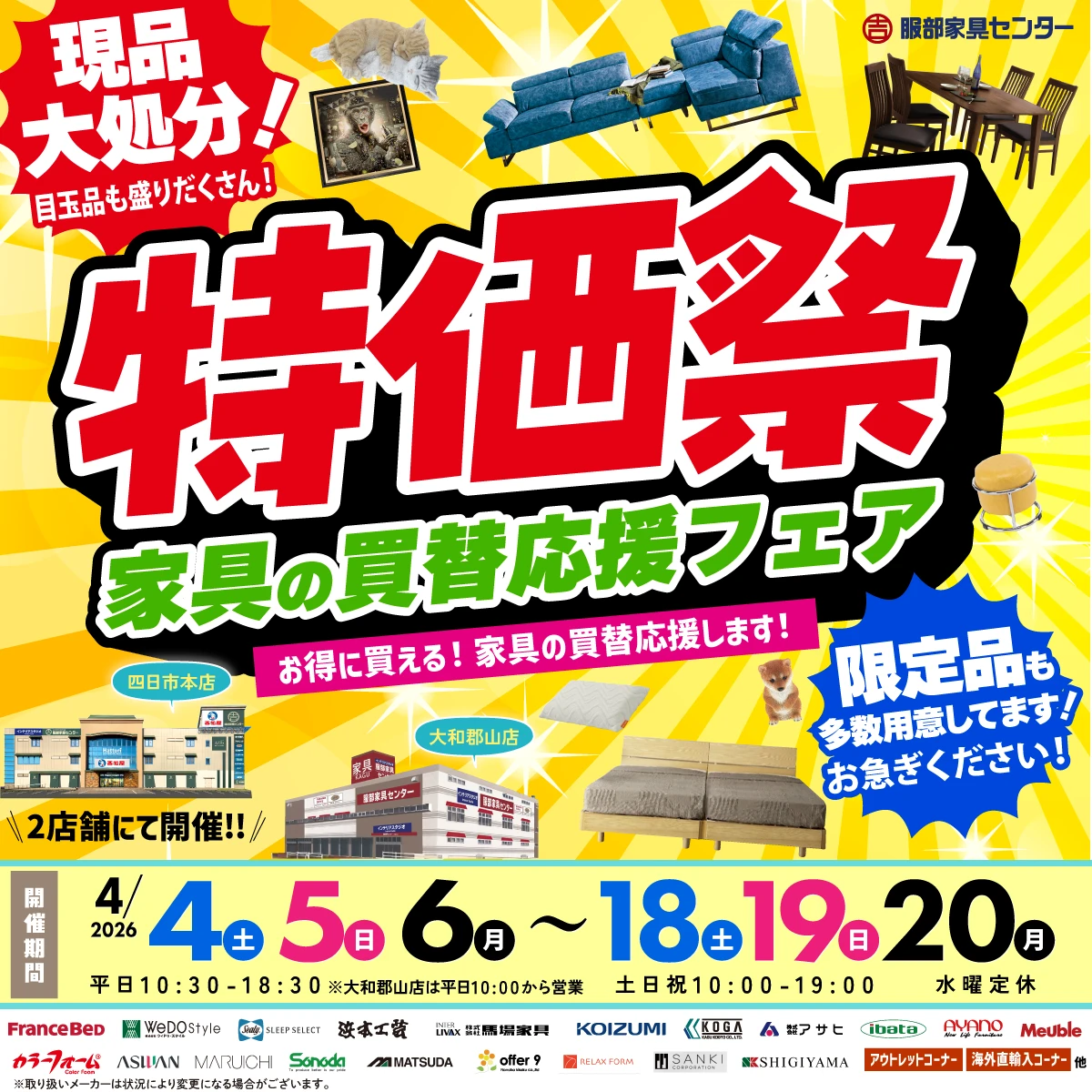 「特価祭」家具の買替応援フェア in 四日市本店・大和郡山店
