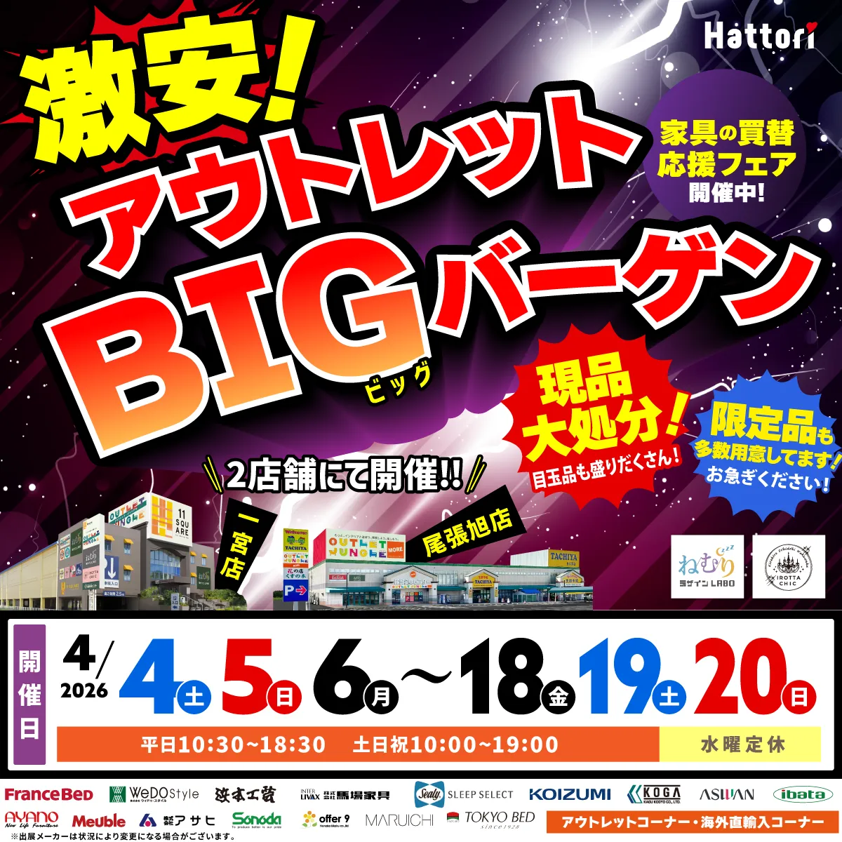 《激安》家具のアウトレットビッグバーゲン in 尾張旭店・一宮店
