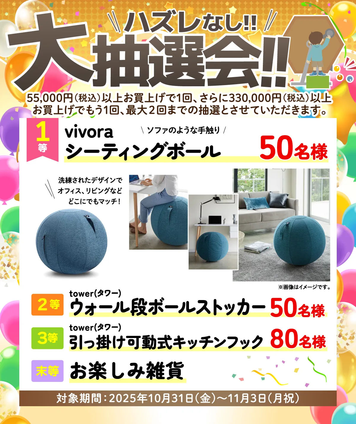 【特典11】ご成約特典 ハズレなしの大抽選会!! 55,000円(税込)以上お買上げで1回、さらに330,000円(税込)以上お買上げでもう1回、最大2回までの抽選とさせていただきます。