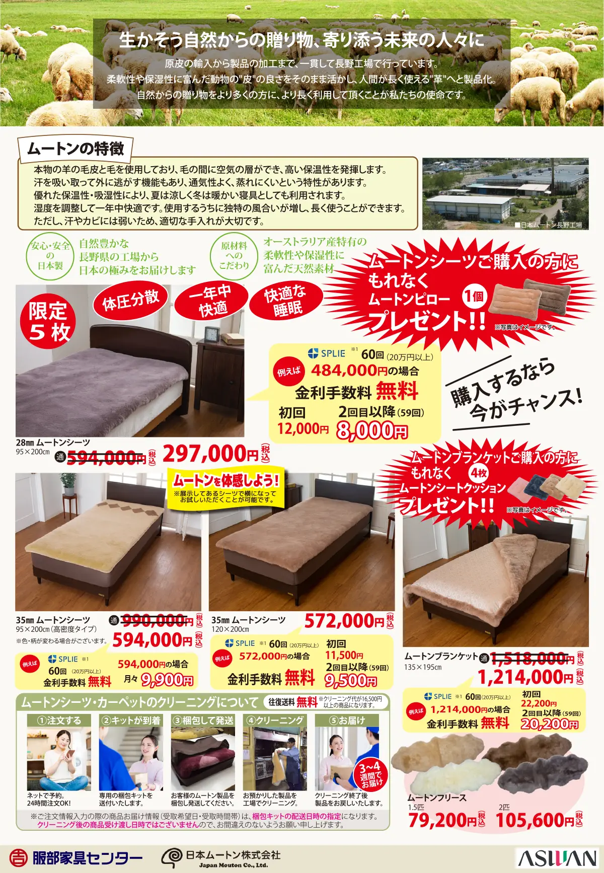 【特典3】環境にも体にも優しい天然素材、ムートンを体感しよう!(※展示しているシーツで寝ていただくことが可能です。)