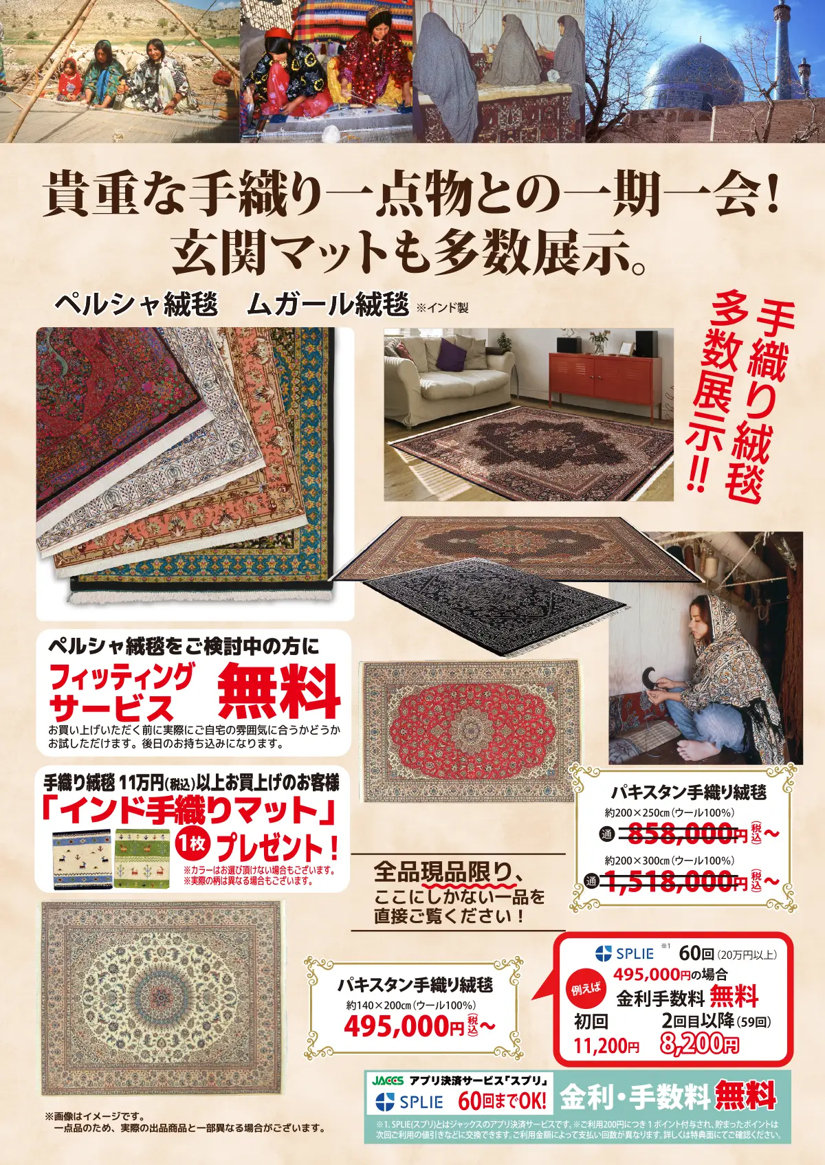 【特典4】ペルシャ絨毯・ムートン 専門スタッフ常駐(※会場スタッフにお申し付けください。※混雑時はお待ちいただく場合がございます。)
