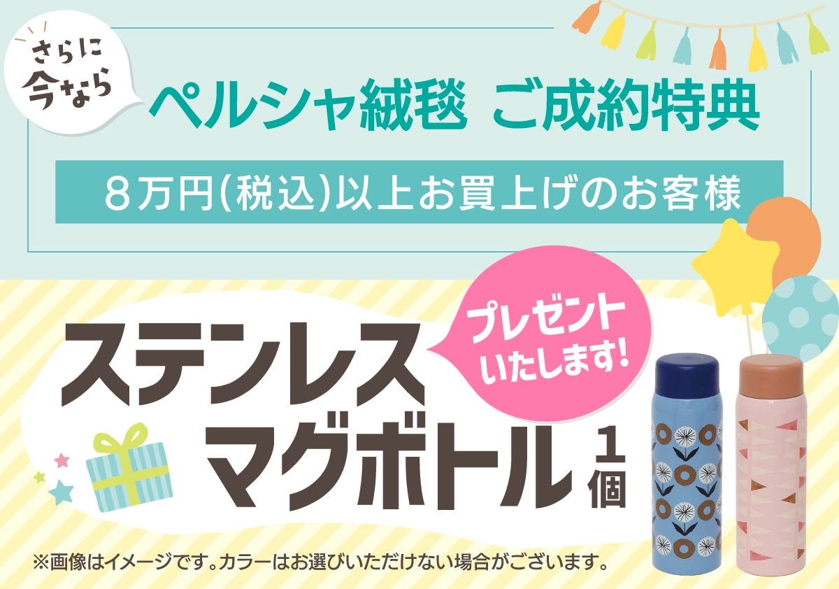 ペルシャ絨毯を8万円(税込)以上お買上げのお客様のに「ステンレスマグボトル 1個」プレゼントいたします。(※画像はイメージです。カラーはお選びいただけない場合がございます。)