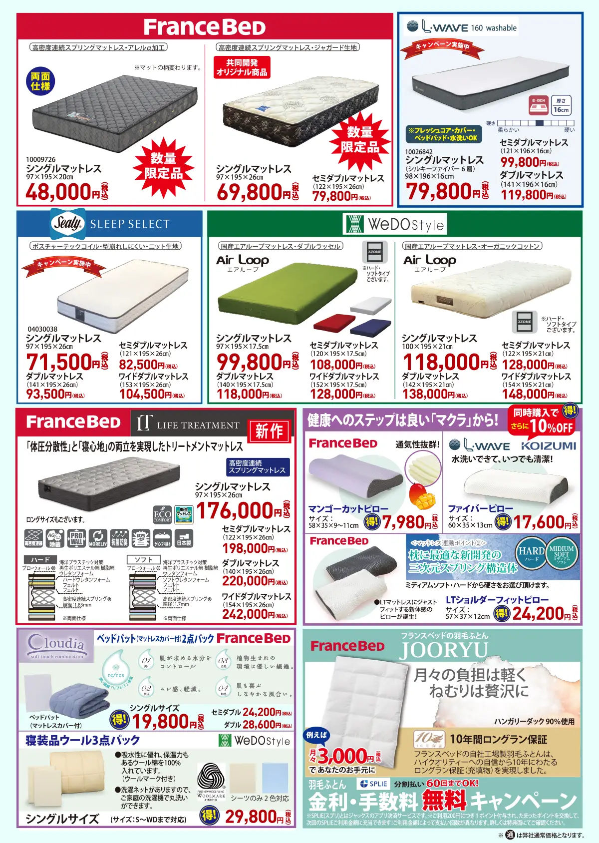 マットレスも特別価格!お値打ち品は数量限定!