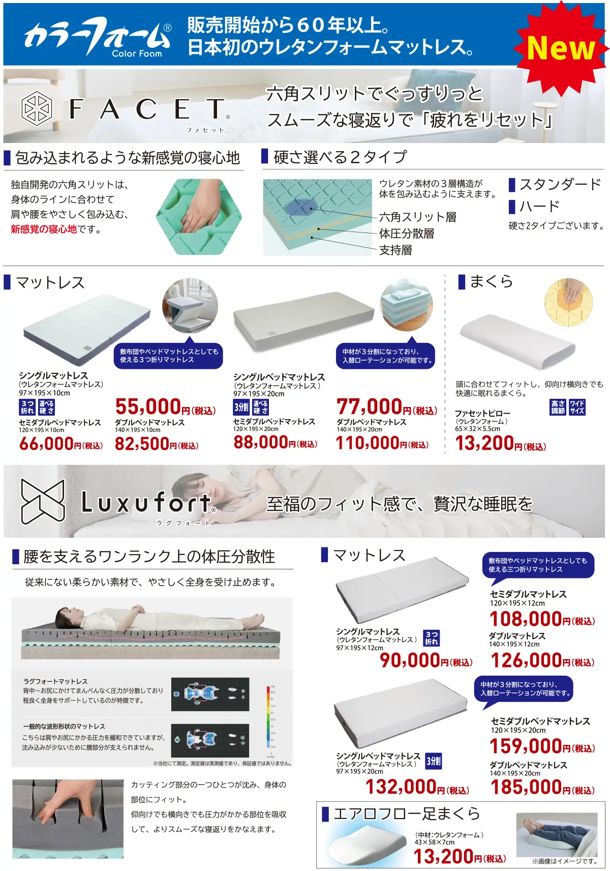 からだにフィットする柔らかさと、程よいクッション感を両立したものが最高級ラインナップ。