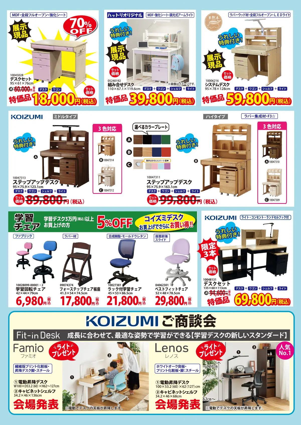 【特典3】学習デスク3万円(税込)以上お買上げで、学習チェア〈会場価格よりさらに!〉5%OFF