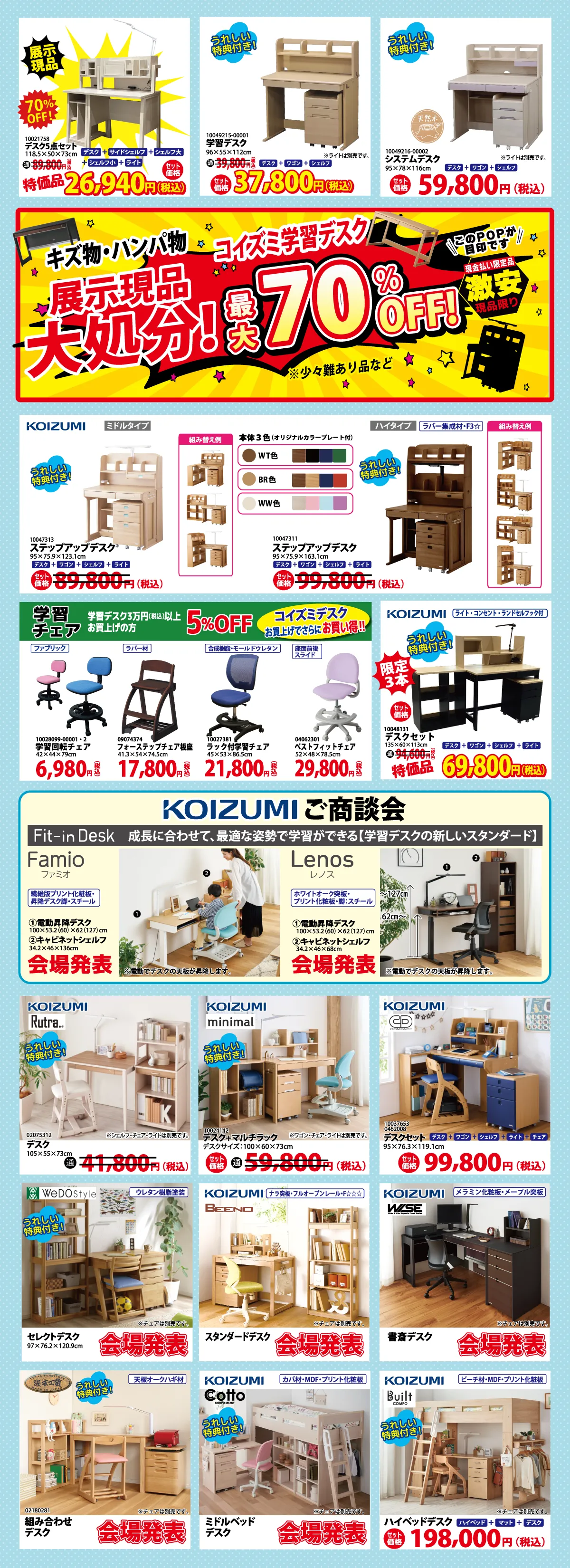 学習デスク展示品大処分!大幅値下げ!最大70%OFF