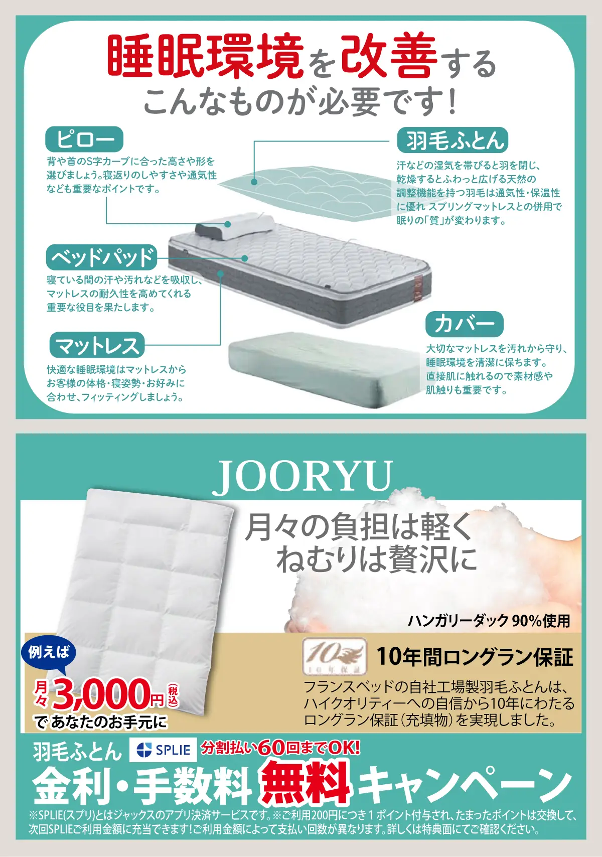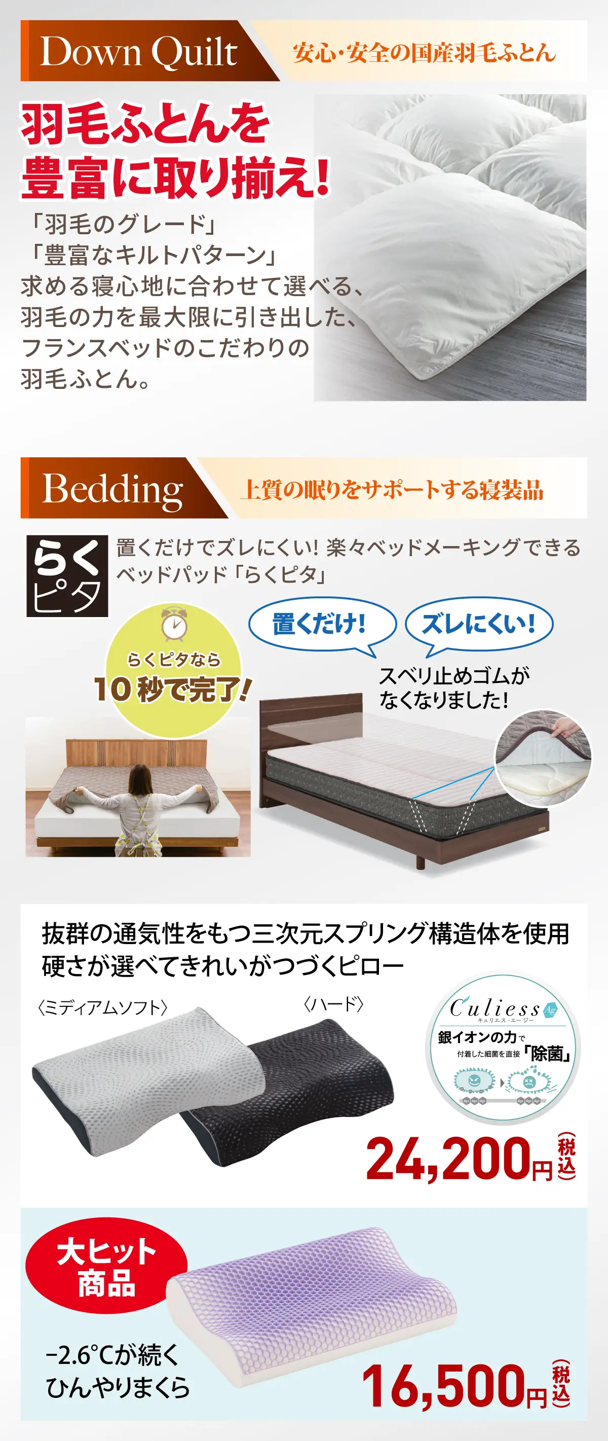 高い品質基準を満たすフランスベッドの羽毛ふとん「JOORYU」