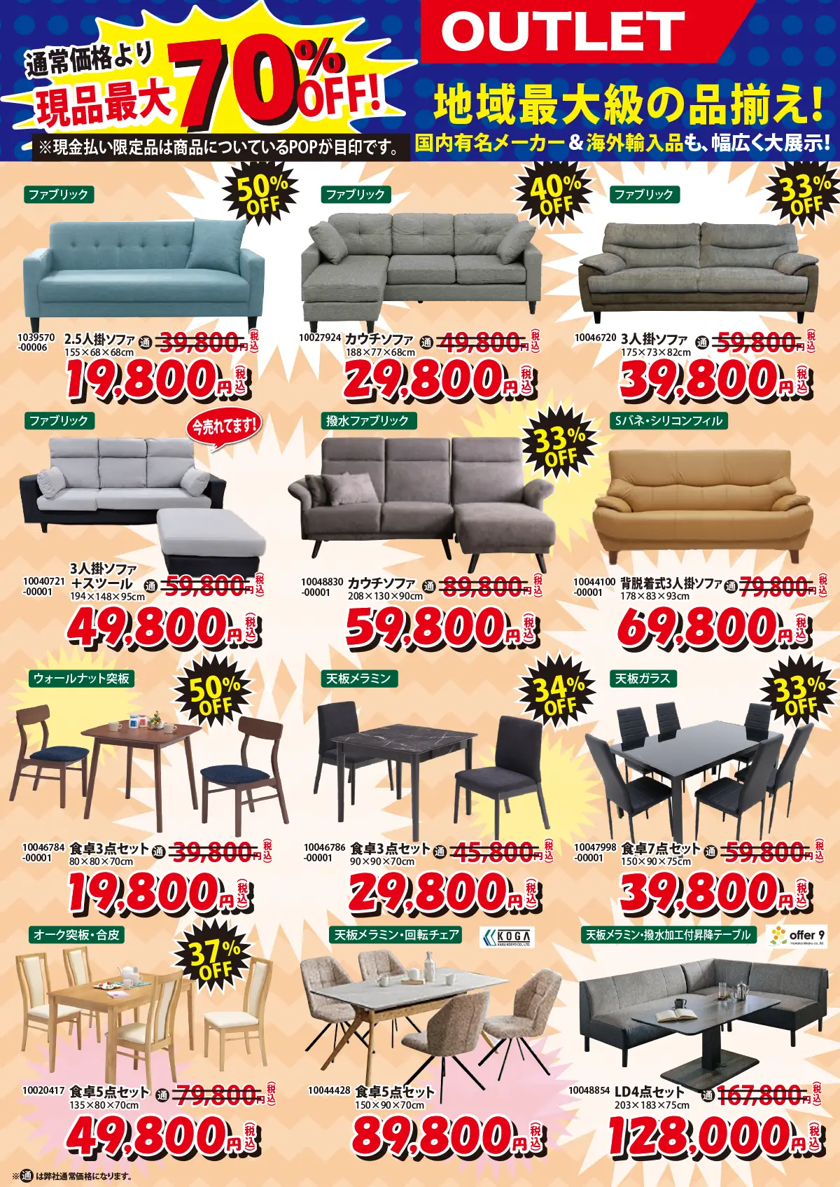 最大70%OFF!!地域最大級の品揃え【アウトレットコーナー】