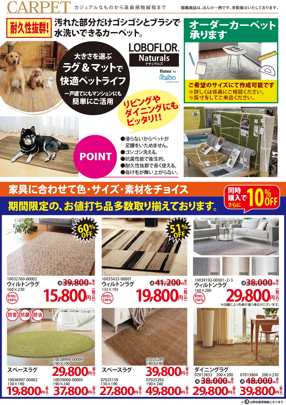 【特典12】[同時購入でお得]カーペット お値打ち品がさらに 10%OFF
