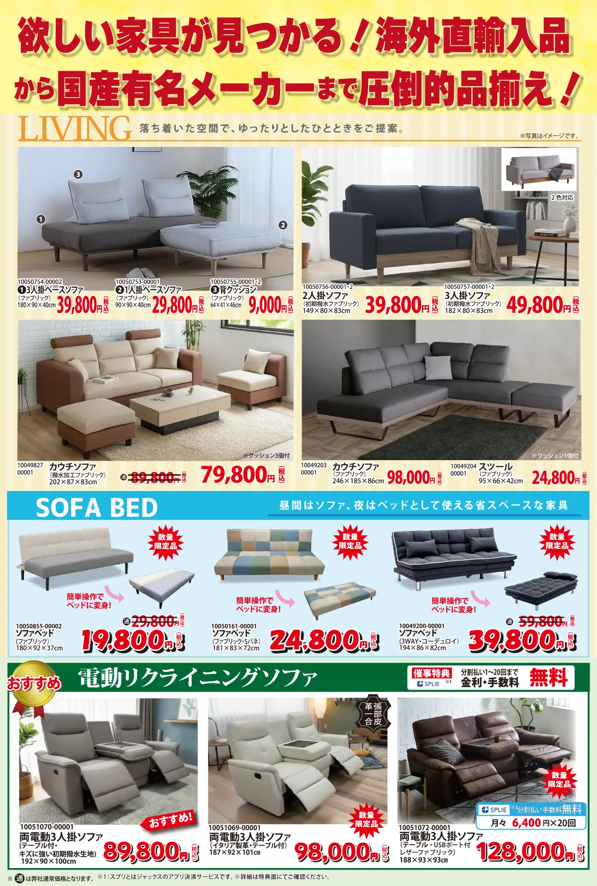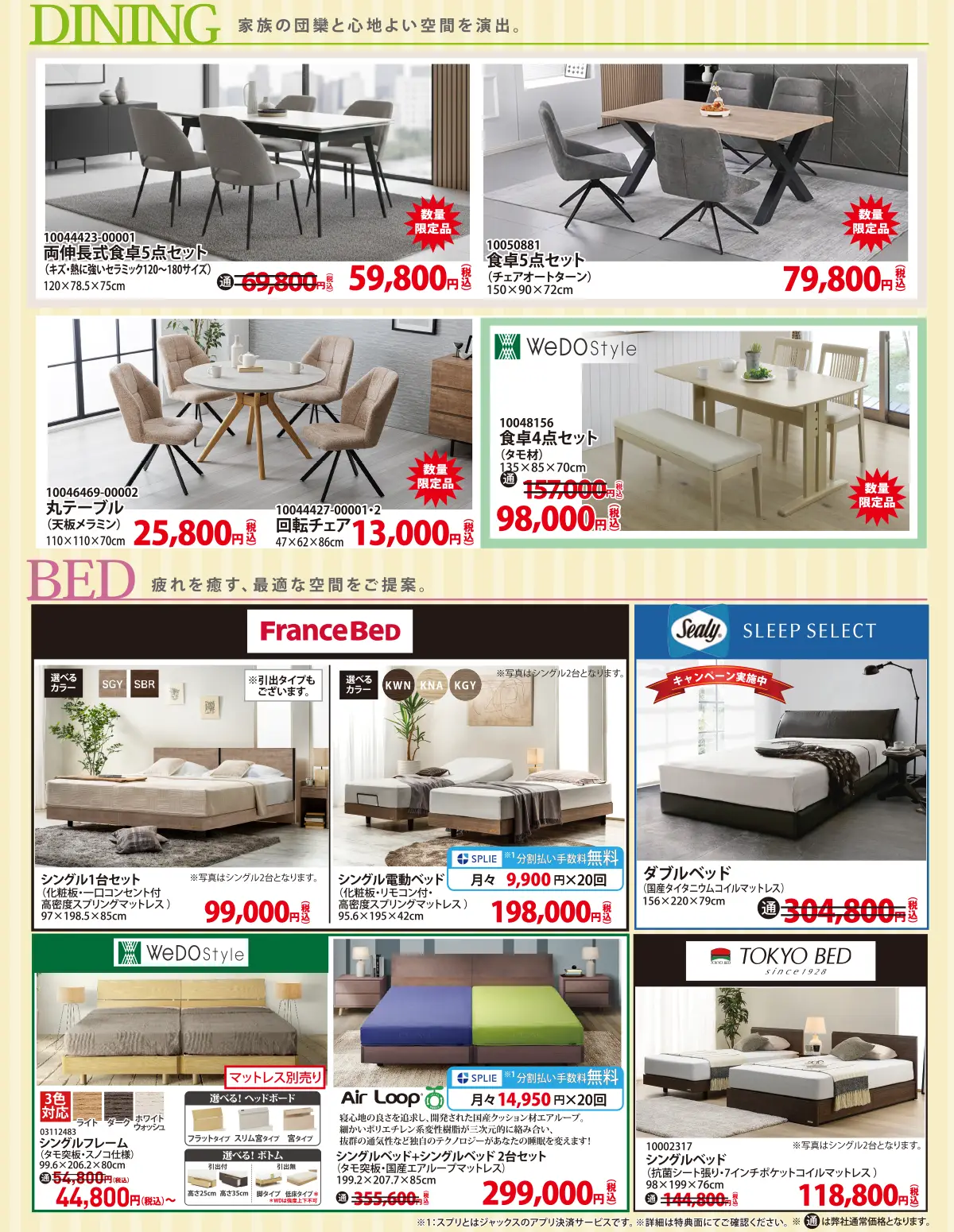 リビング、ダイニング、寝室とトータルコーディネートができる全ての家具が揃いました。あなただけのセレクトをお楽しみください。また、会場発表の特別価格の家具もご用意してございますので、あなたにピッタリの家具が見つかります。