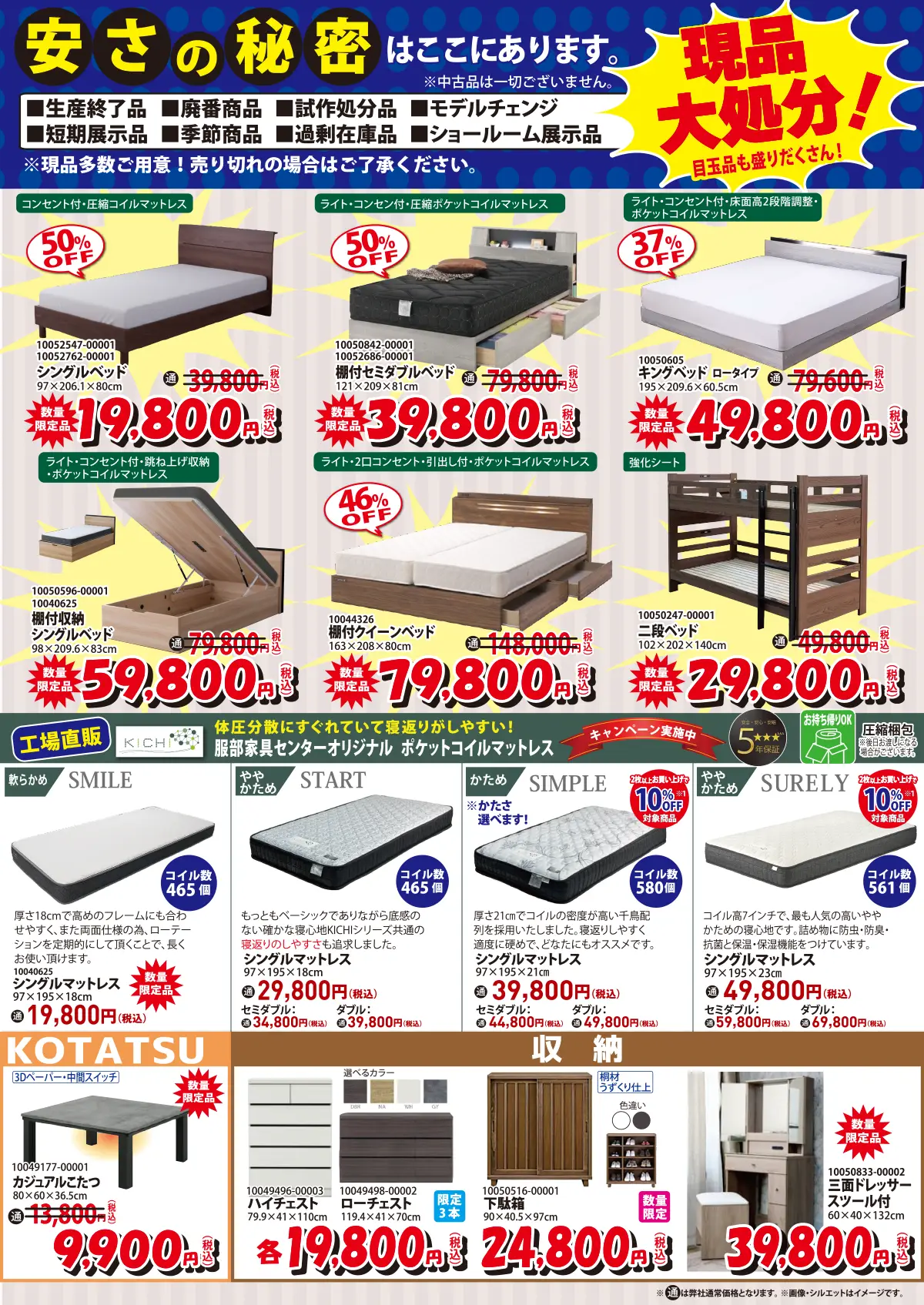 【特典7】《同時購入特典》服部家具センター オリジナルマットレス“KICHI” 2枚以上お買上げで10%OFF(※通常価格39,800円(税込)以上の商品が対象となります。)