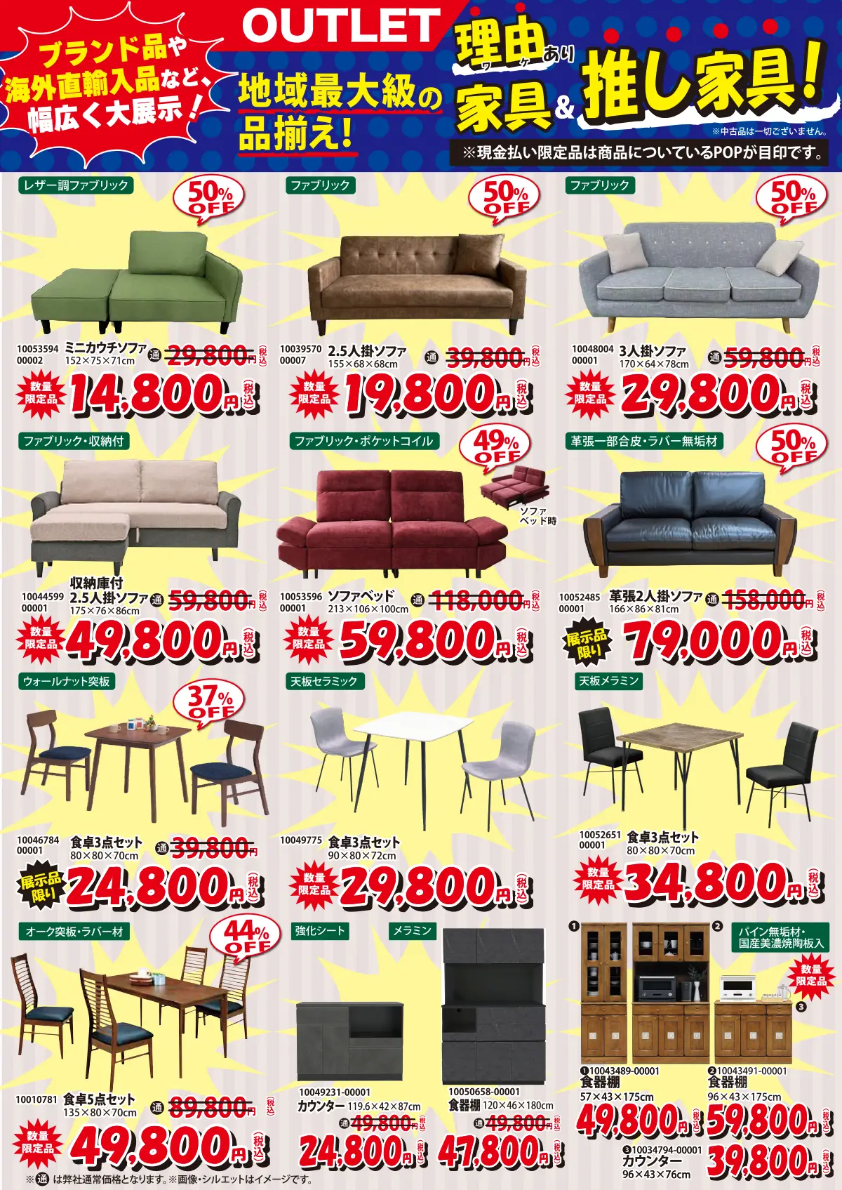 【現品大処分】アウトレット家具 地域最大級の品揃え
