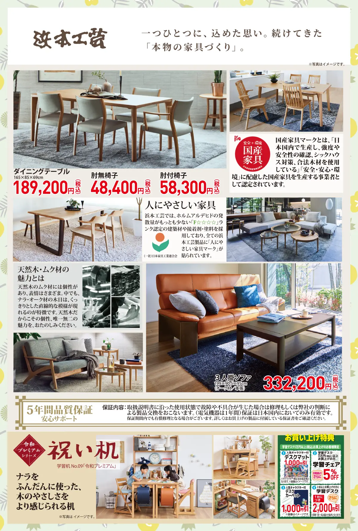 ソファ・ダイニングセット・学習デスクを特別価格にてご提供いたします。