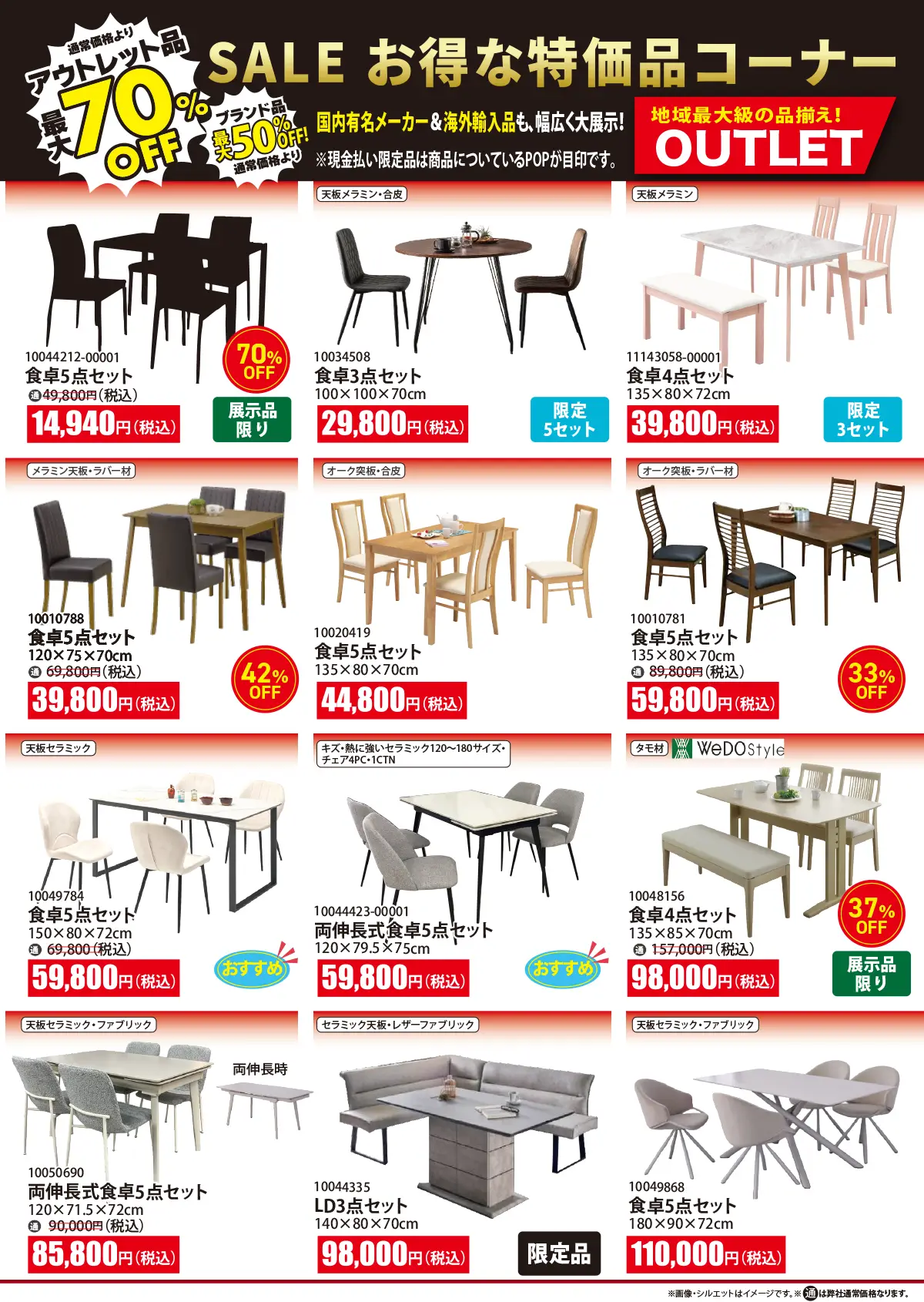 【最大70%オフ】地域最大級の品揃え!アウトレットコーナー 特価品を大放出!