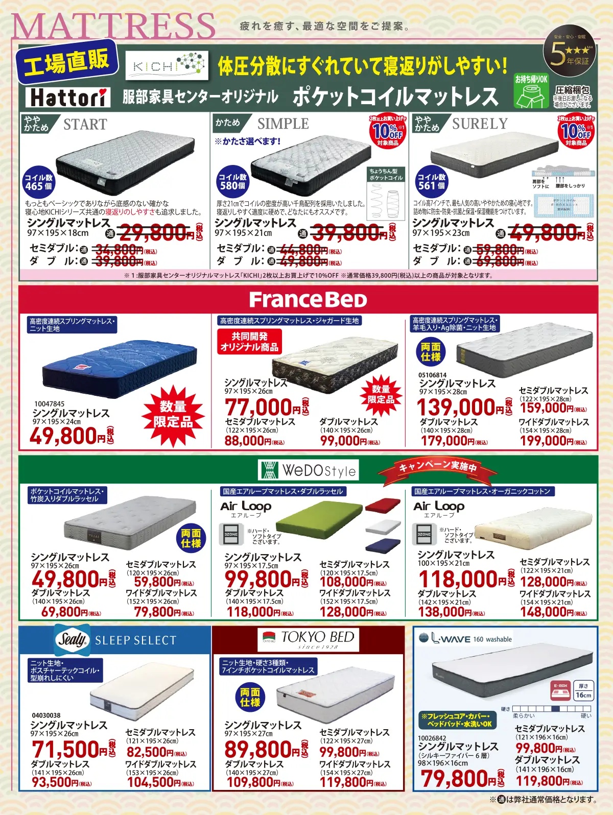 【特典10】《同時購入特典》服部家具センター オリジナルマットレス“KICHI” 2枚以上お買上げで10%OFF(※通常価格39,800円(税込)以上の商品が対象となります。)