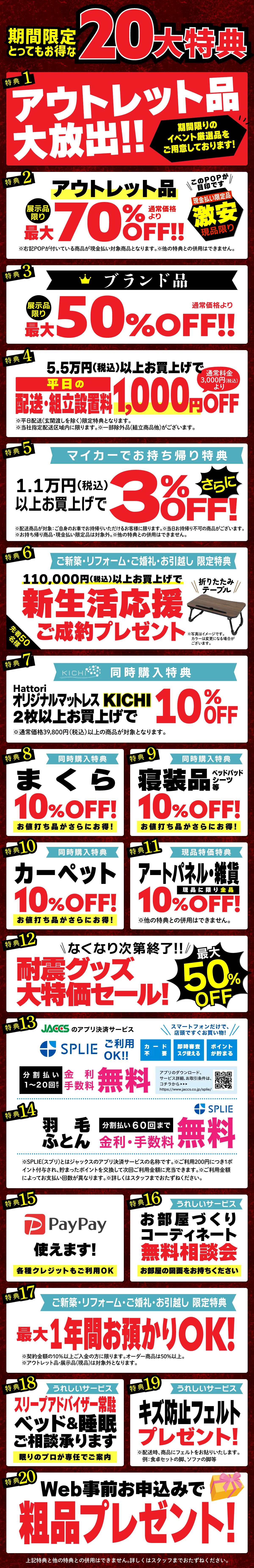 【特典1】アウトレット品大放出!!期間限定のイベント厳選品をご用意しております!