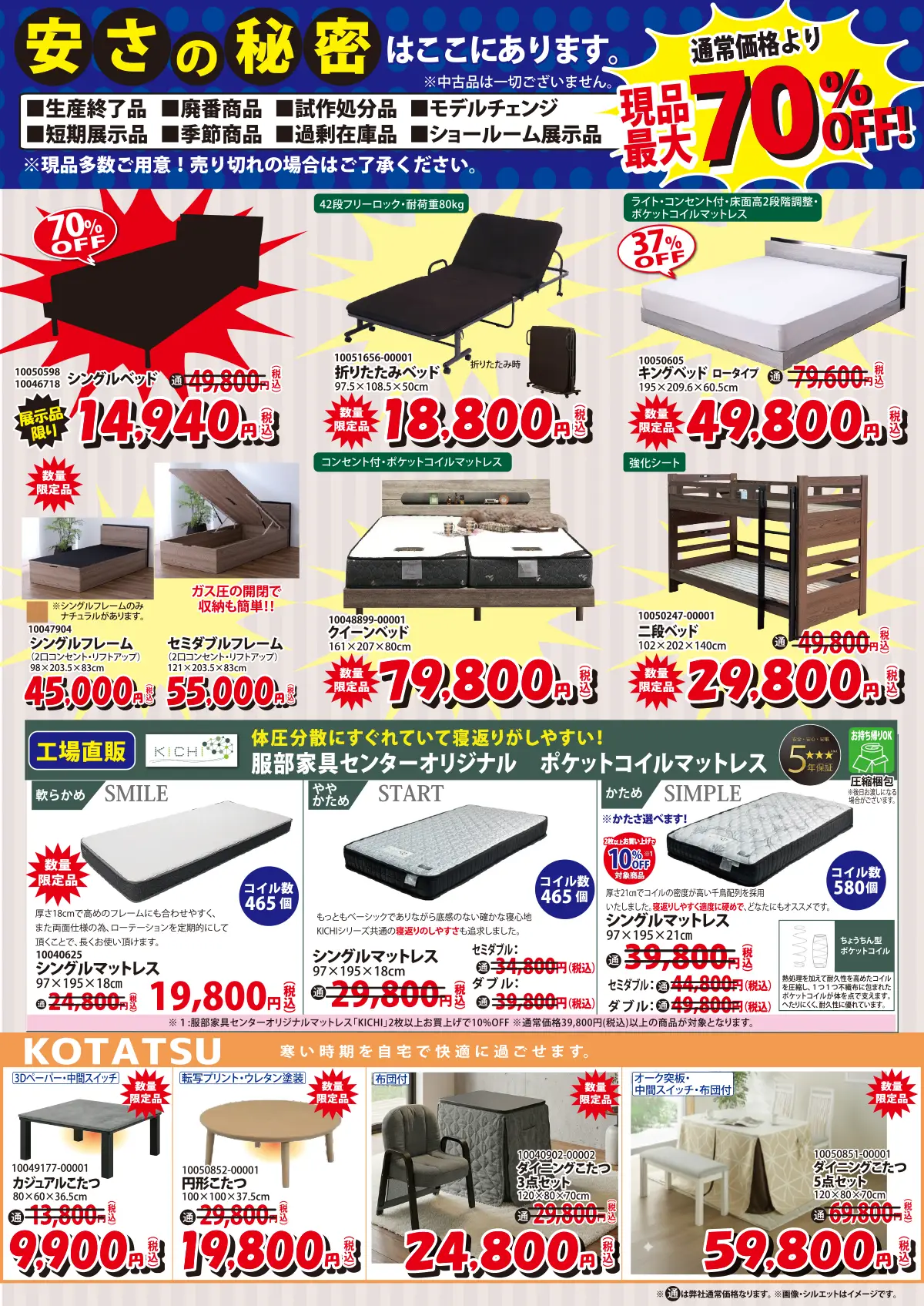 【特典7】《同時購入特典》服部家具センター オリジナルマットレス“KICHI” 2枚以上お買上げで10%OFF(※通常価格39,800円(税込)以上の商品が対象となります。)