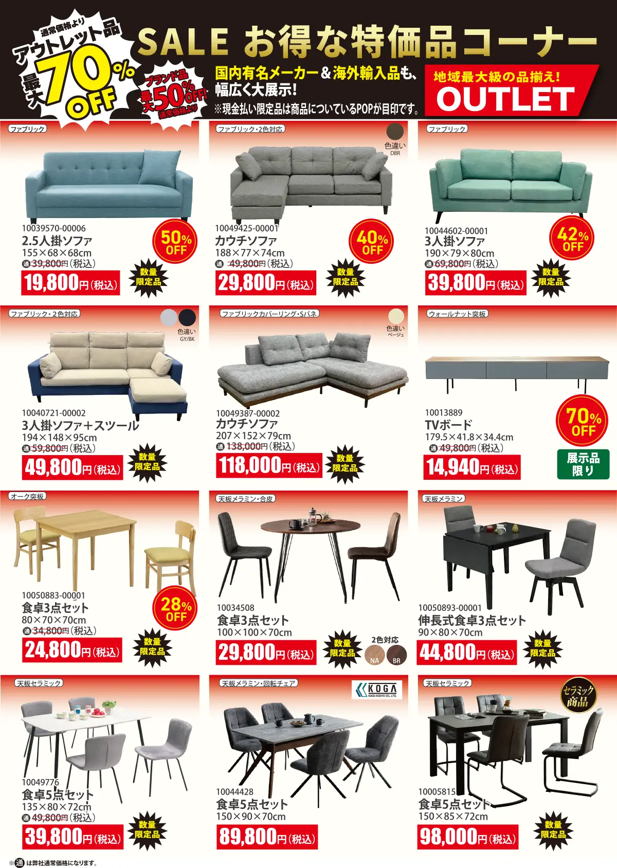 【特典2】アウトレット品 [展示品に限り]最大70%OFF!!※通常価格より