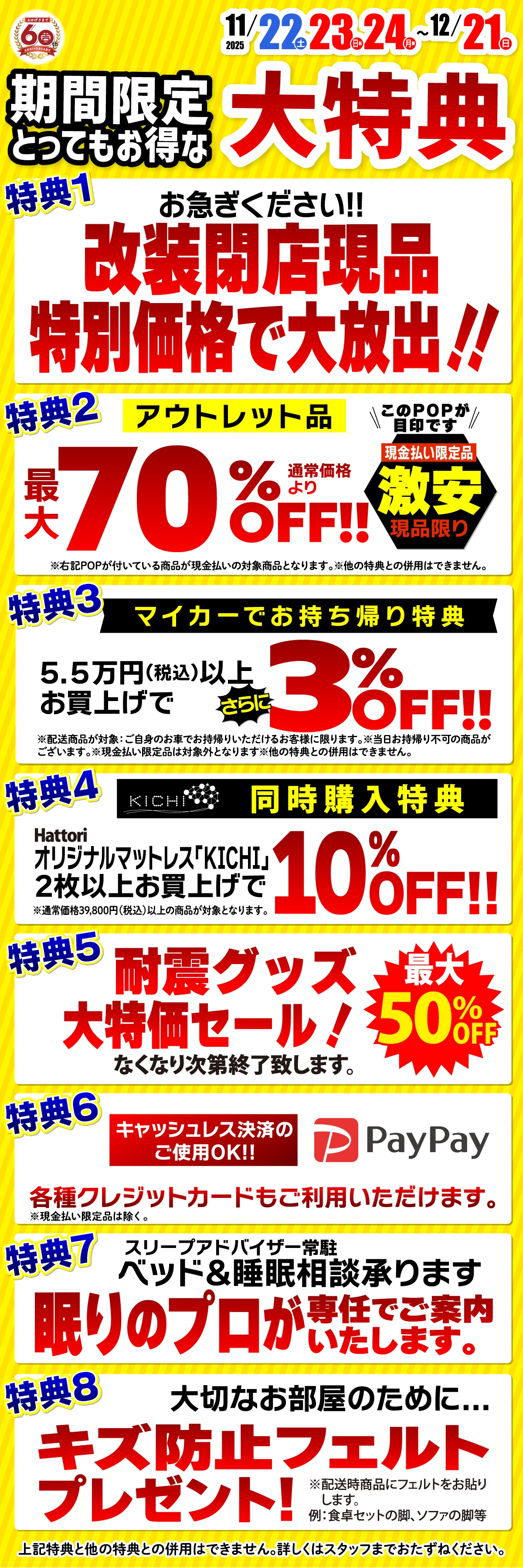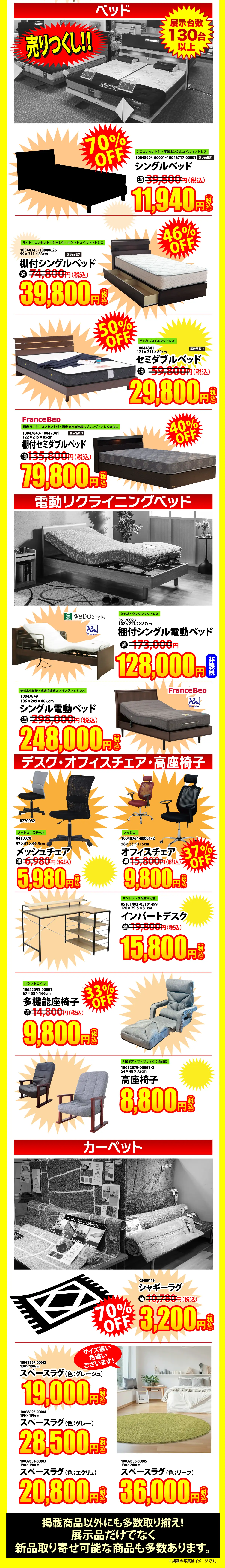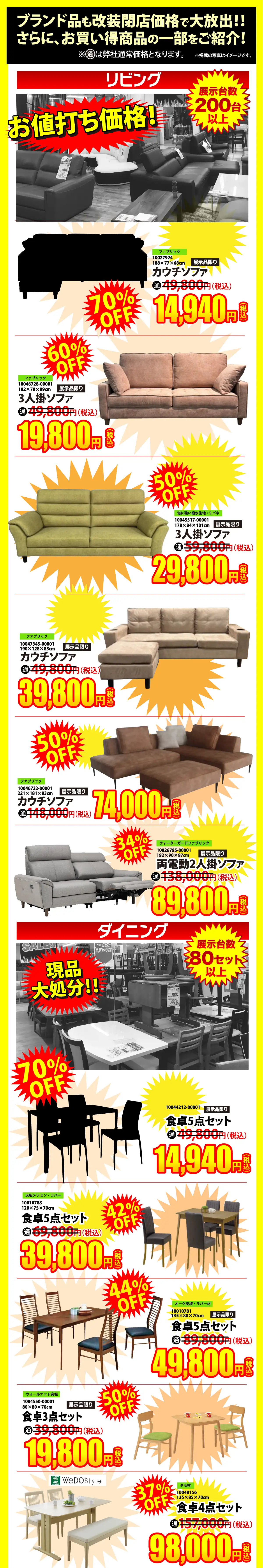 【特典1】お急ぎください!!改装閉店現品特別価格で大放出!!