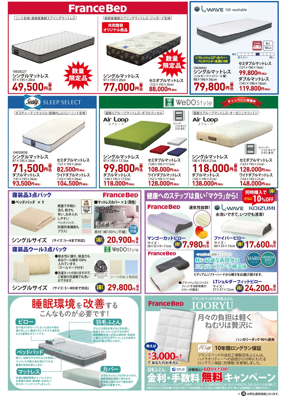 【特典11】[SPLIE(スプリ)]羽毛ふとん 分割払い60回まで金利手数料無料!