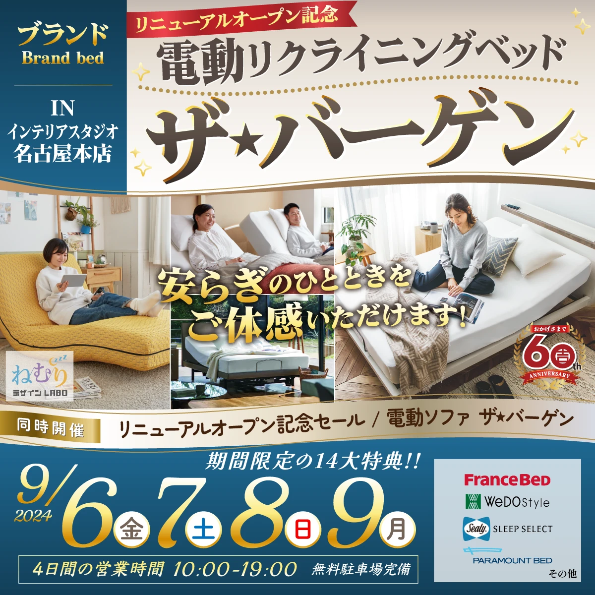 HOME / ブランド電動リクライニングベッド ザ★バーゲン in 名古屋本店【お申込み】