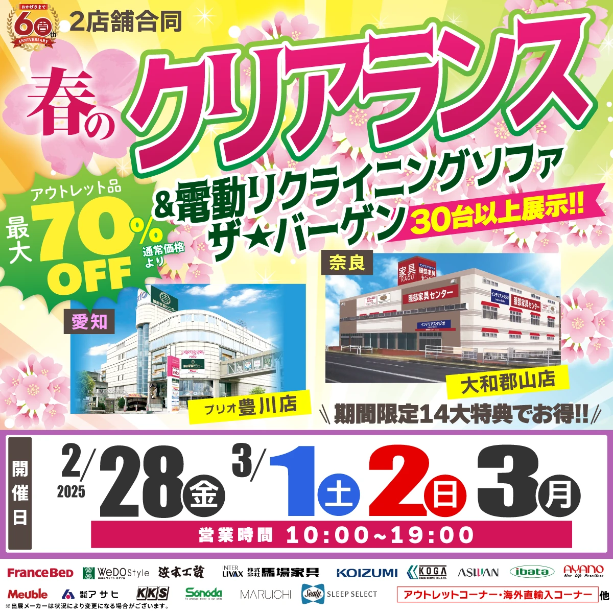 《2店舗合同》春のクリアランスセール in 豊川店・大和郡山店【お申込み】