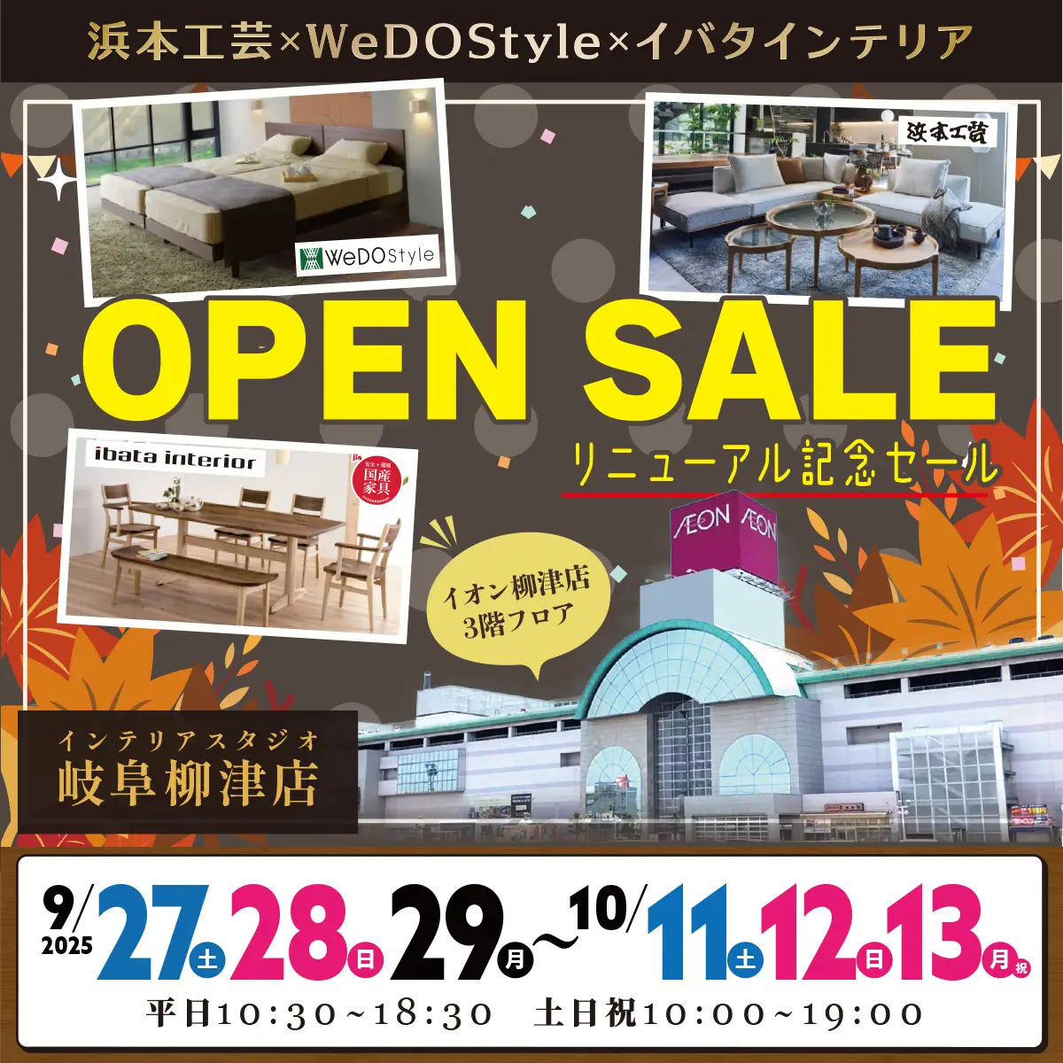 《浜本工芸×イバタインテリア×ウィドゥ・スタイル》リニューアルオープン記念セール in 岐阜柳津店【お申込み】