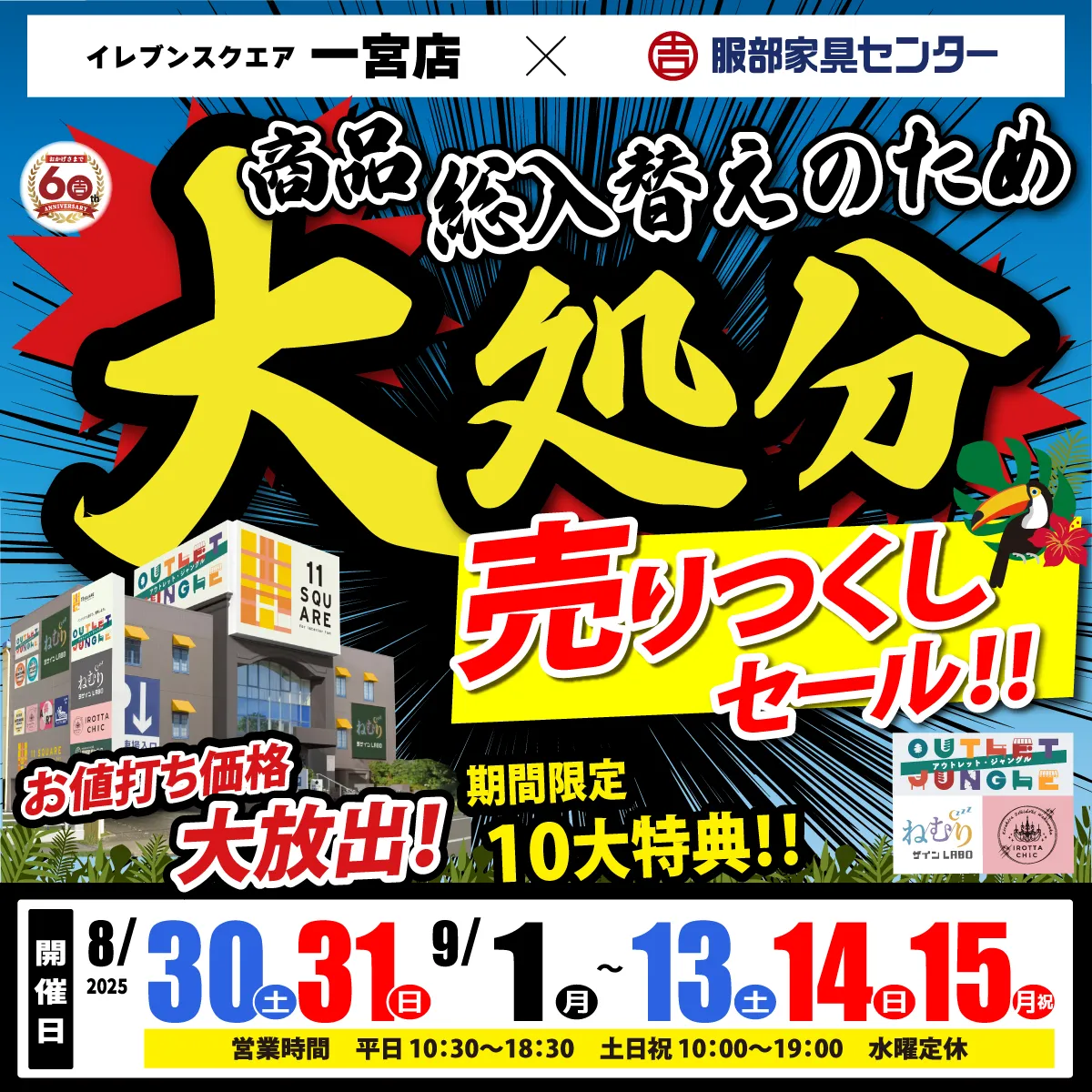商品層入替えのため「大処分・売りつくしセール」 in 一宮店【お申込み】