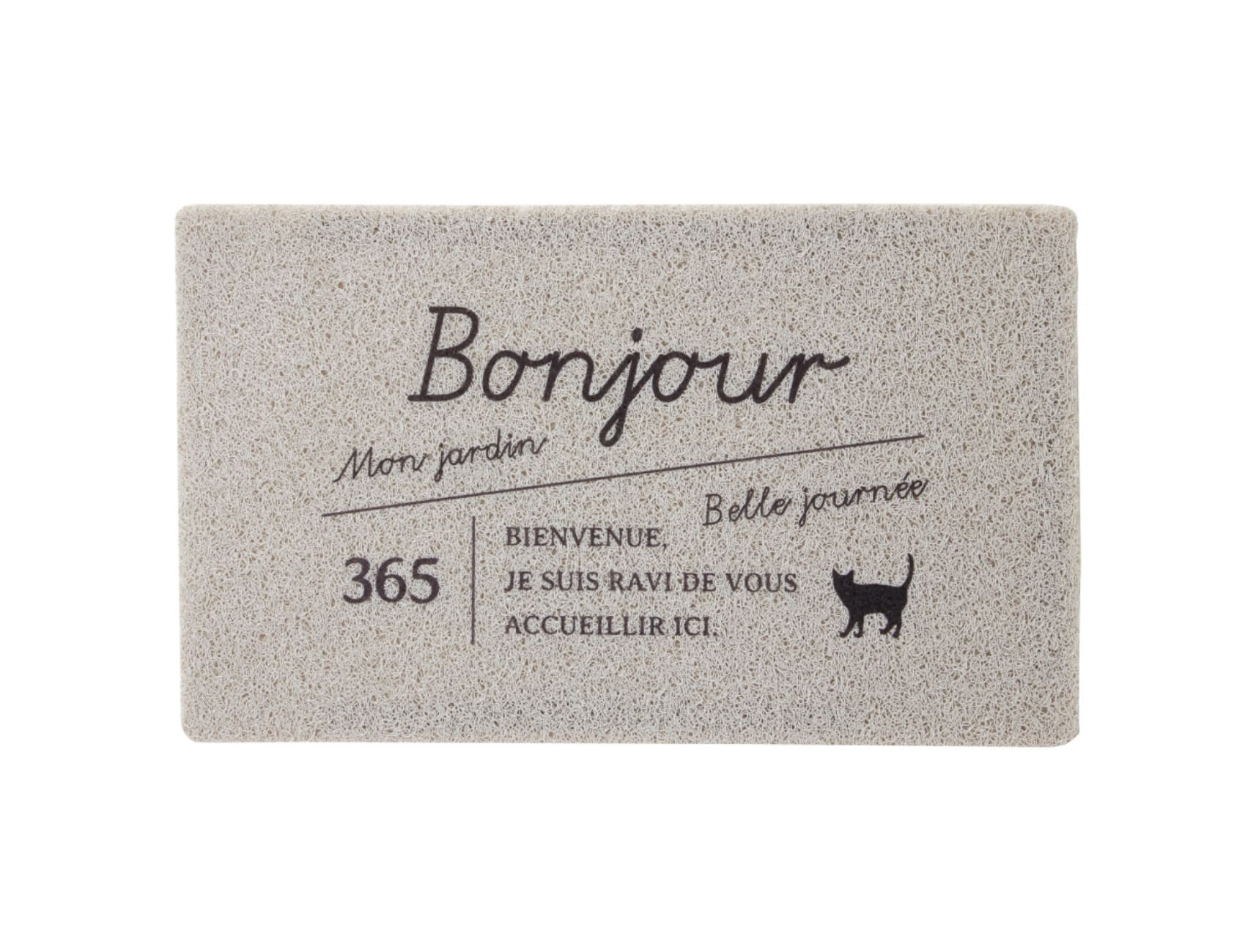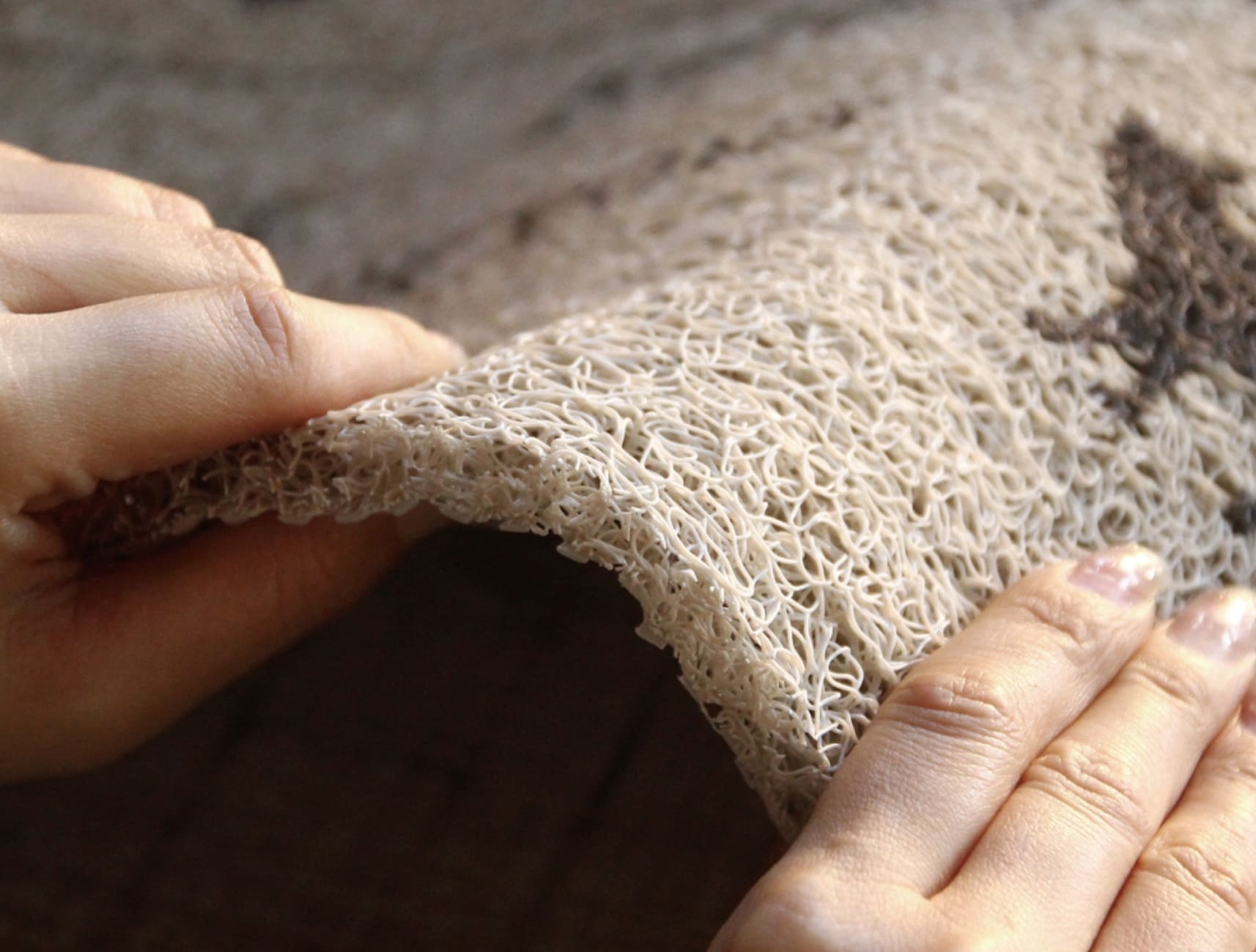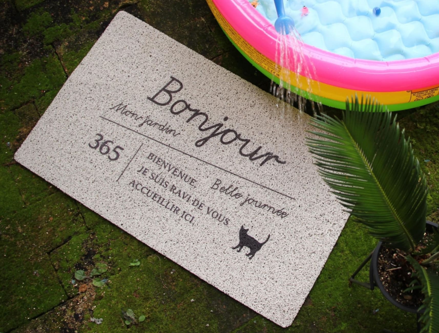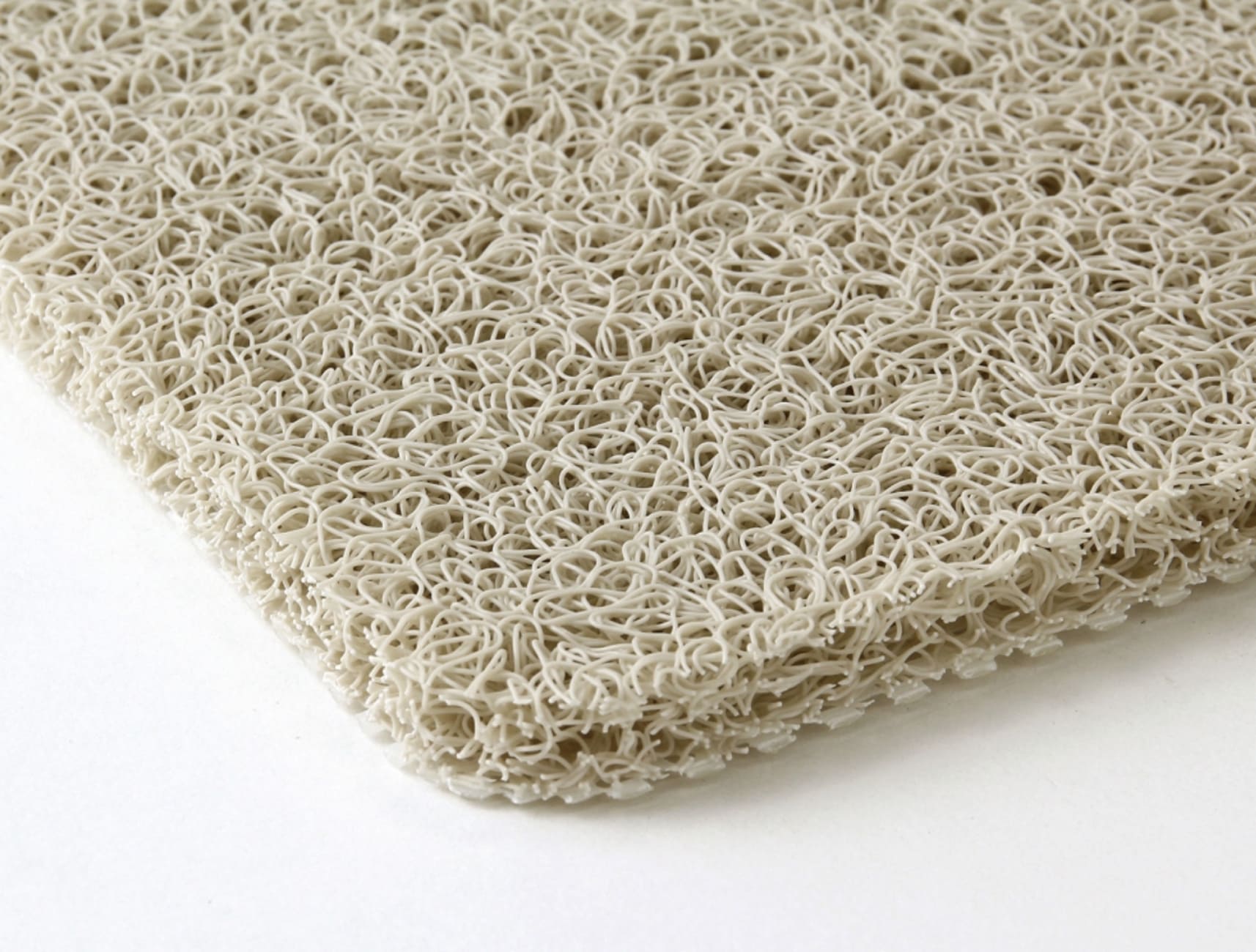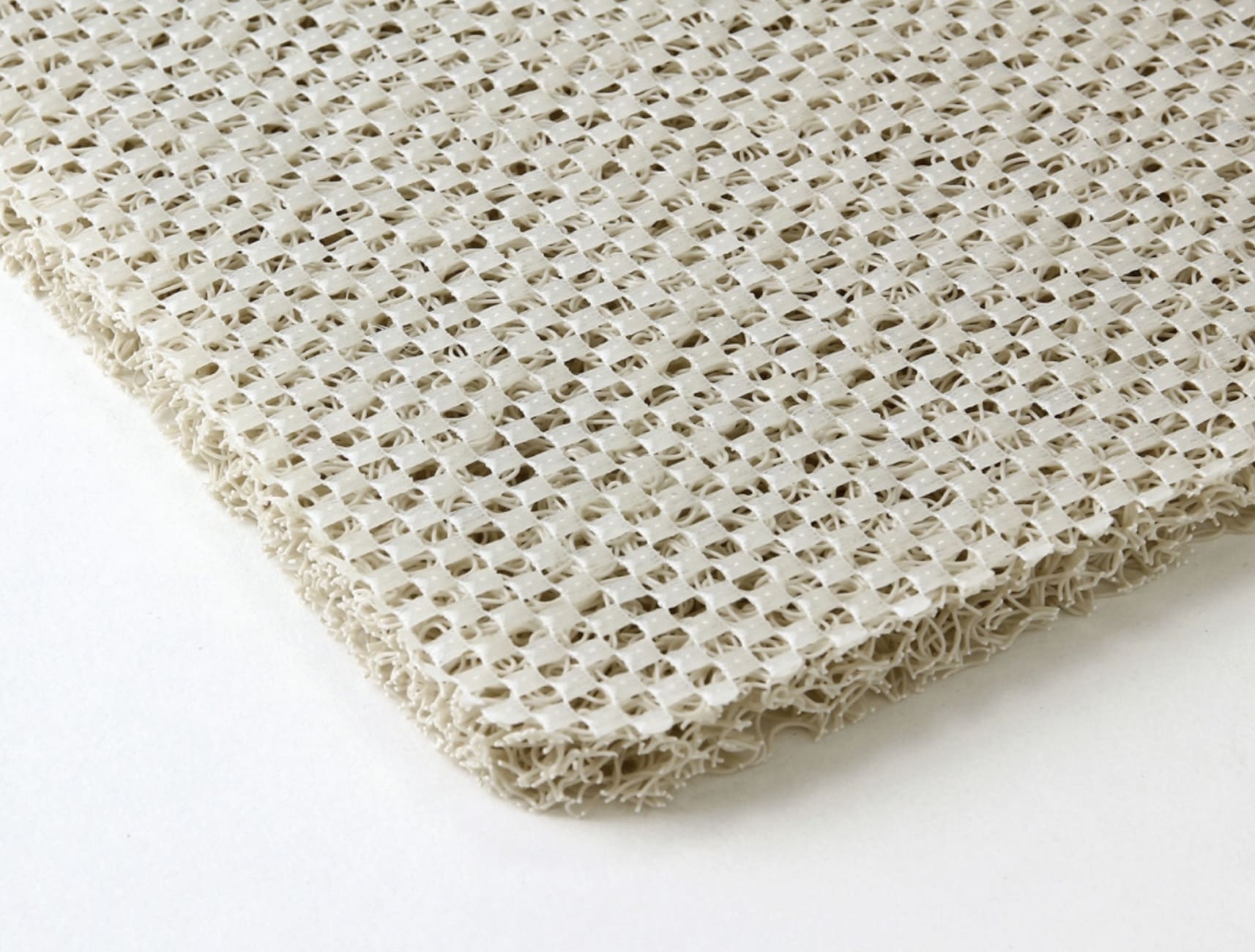 水や日差しに強く劣化しにくいPVCマット。通気性が良く細かな土や砂は隙間から下に落ちるのでザラつきにくく、汚れても水で丸洗いできます。
