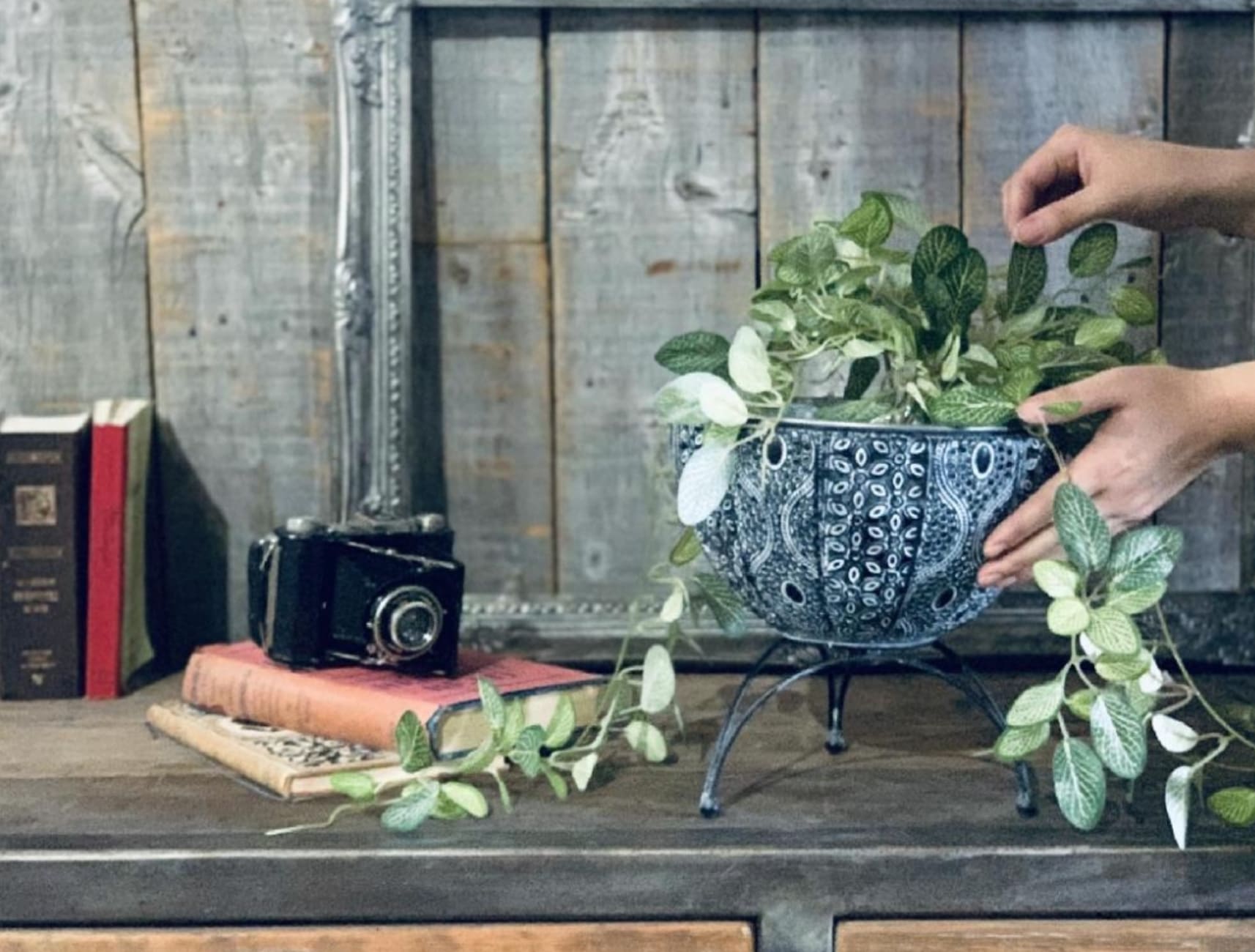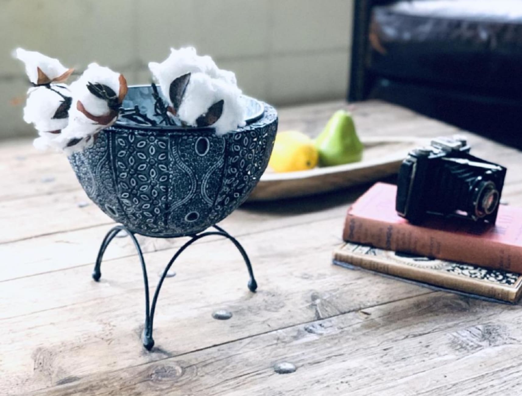 植物やキャンドルが似合うアイアンポット
