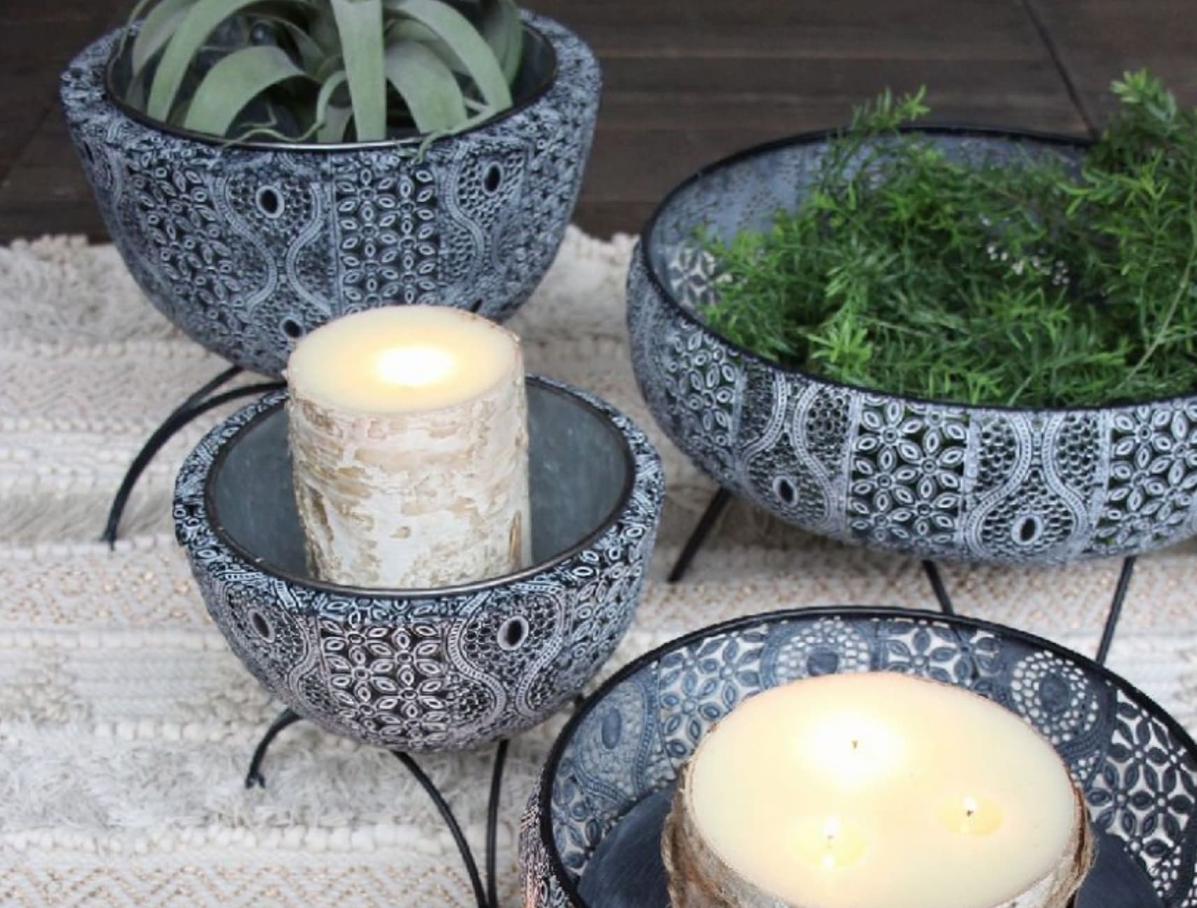 エアープランツやキャンドルなどを入れ、デコレーションを楽しみましょう。