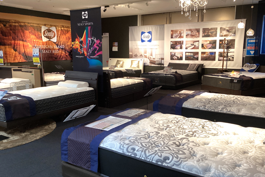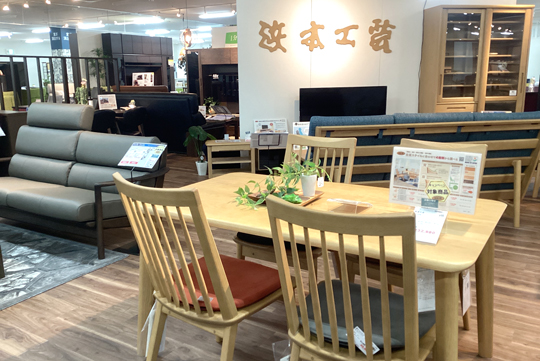 アウトレット、輸入商品、そして国内一流メーカーまで多くの商品アイテム数がありご予算に合わせて御提案できる店舗になっています。カリモクギャラリー、フランスベッドギャラリーもありお客様もそれを知って、わざわざ遠くからご来店いただけることもあります。カリモク商品をしっかりと説明して欲しいお客様にはカリモクマイスターが2名在籍、ベッドをしっかりと説明して欲しいお客様にはスリープアドバイザーが6名在籍しています。店内は車椅子でも通りやすいように通路を確保しており、ゆったりと展示してありますので、非常に見やすい売り場になっております。