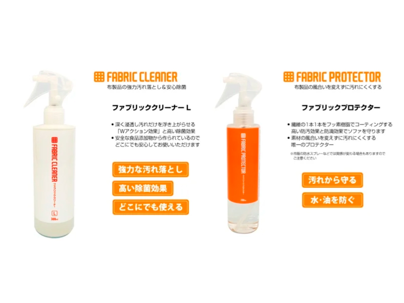 ②汚れを取り除いたらプロテクターをファブリックに直接スプレーし、完全に乾くまで使用しないようにしましょう。